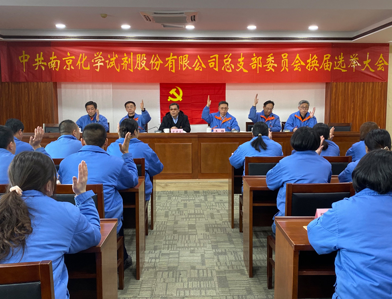 12月26日,南京試劑黨總支委員會換屆選舉會議在公司三樓會議室召開,會議由總支委員、總經理王志剛主持,黨員、預備黨員45人參會。江北新材料科技園機關黨總支副書記楚屏玉、綜合管理部祁慧等同志出席。