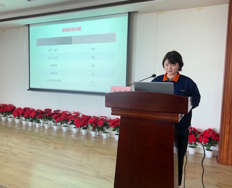 總經(jīng)理在講話中充分肯定了2023年質(zhì)量和創(chuàng)新工作做出的努力和取得的成績,從四個(gè)方面對(duì)來年質(zhì)量、創(chuàng)新工作提了要求。一是強(qiáng)化團(tuán)隊(duì)建設(shè),質(zhì)量和創(chuàng)新團(tuán)隊(duì)要統(tǒng)一認(rèn)識(shí),能挑“硬擔(dān)子”、敢啃“硬骨頭”,勇于挑戰(zhàn),攻堅(jiān)克難,推動(dòng)企業(yè)追求卓越,守正創(chuàng)新。二是強(qiáng)化制度執(zhí)行,管理部門要敢于較真,嚴(yán)格監(jiān)督考核,以GMP體系的實(shí)施為契機(jī),進(jìn)一步夯實(shí)基礎(chǔ)管理。三是保證資源投入,加快檢測(cè)、研發(fā)實(shí)驗(yàn)室改造和設(shè)備設(shè)施提檔升級(jí)。四是各條線、各部門分廠,要以市場(chǎng)為導(dǎo)向,服務(wù)關(guān)口前移,管理重心下沉,精心、用心、細(xì)心、專心,竭誠為顧客提供優(yōu)質(zhì)的產(chǎn)品和服務(wù)。